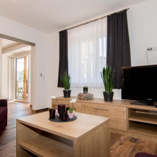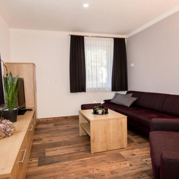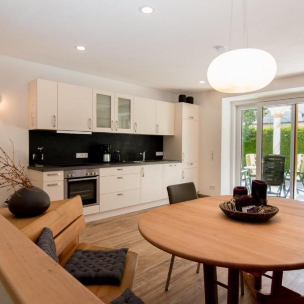 Wohnzimmer, Küche mit Essbereich • Küchenutensilien • Kühlschrank • Spülmaschine • Mikrowelle • Backofen • Herdplatten • Toaster • Kaffeemaschine • Wasserkocher • Satelliten-TV • Radio mit CD-Player • Schreibtisch • Sofa • Radiowecker • Kostenfreies WLAN • Badewanne • Handtücher • Bettwäsche • Haartrockner • Waschmaschine • überdachte Terrasse