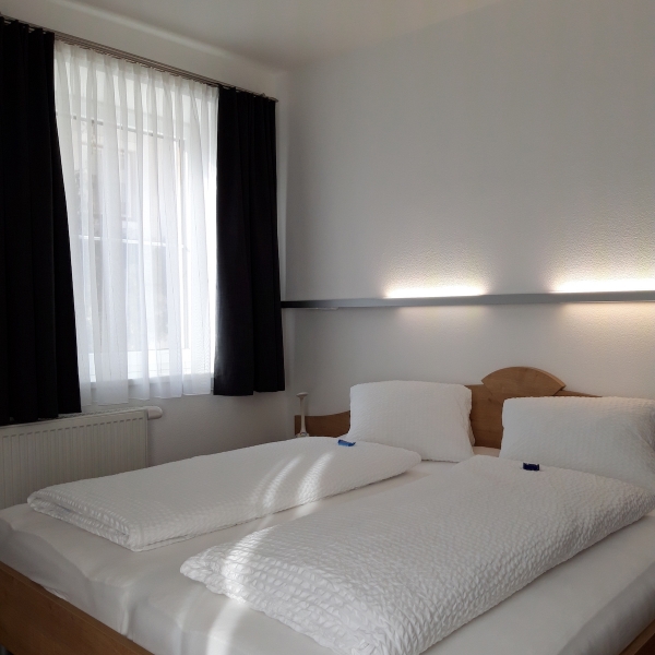 Ehebett – nicht trennbar, Dusche/ WC, Balkon, Sat-TV, kleiner Kühlschrank, Föhn, W-Lan